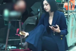 女生街边修高跟鞋,穿上鞋子时超有氛围感!