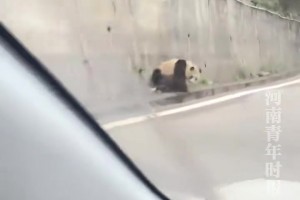男子在路上偶遇野生大熊猫,跑起来憨态可掬!