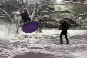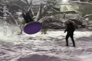 女生坐轮胎滑雪,弹太高脸着地